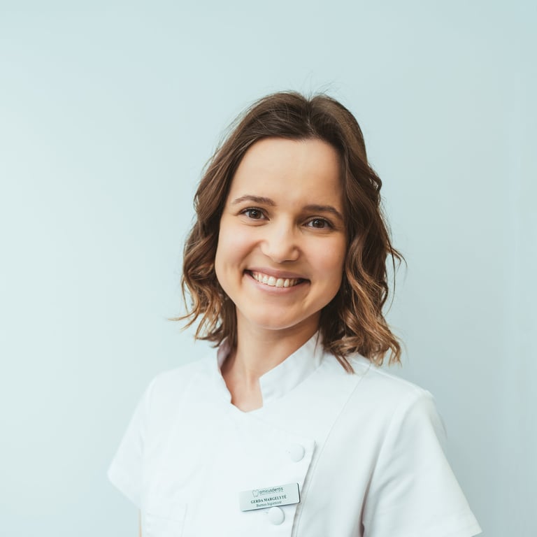 Pagrindinis Gerdos uždavinys darbo metu, kad pacientams atliekamos procedūros būtų maksimaliai komfortiškos ir rezultatai džiugintų. Darbo metu burnos higienistei ypač svarbu komunikacija su pacientu pagal šią metodiką „TELL-SHOW-DO“ – paaiškinama, parodoma ir kartu išmokstama tinkamai pritaikyti parinktas burnos priežiūros priemones.